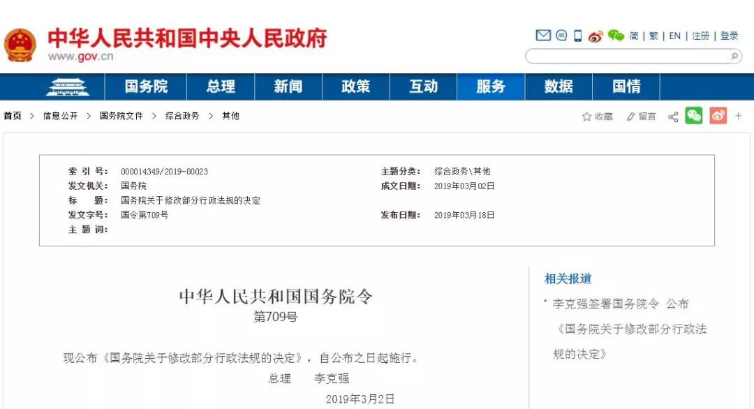 根据2019年3月18日国务院第709号令《国务院关于修改部分行政法规的决定》修订)