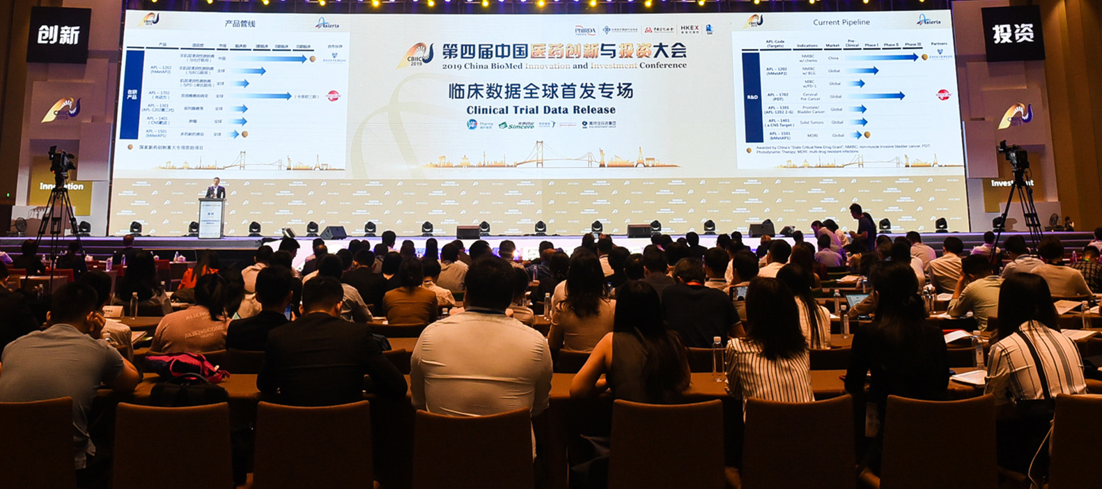 2019年9月21日,在备受瞩目的第四届“中国医药创新与投资大会”(以下简称“创投大会”)临床数据首发专场,八个在研新药进行了各期关键临床数据的对外披露,项目涵盖阿尔茨海默病(AD)、系统性红斑狼疮、多种实体瘤、HER2阳性转移性乳腺癌、胶质母细胞瘤、非肌层浸润性膀胱癌、晚期原发卵巢癌、革兰氏阳性菌等治疗领域。