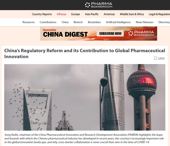 4月16日,国际媒体PharmaBoardroom正式刊载了由中国医药创新促进会会长宋瑞霖撰写的题为“中国药品监管改革成果和对全球医药创新的贡献”的文章。