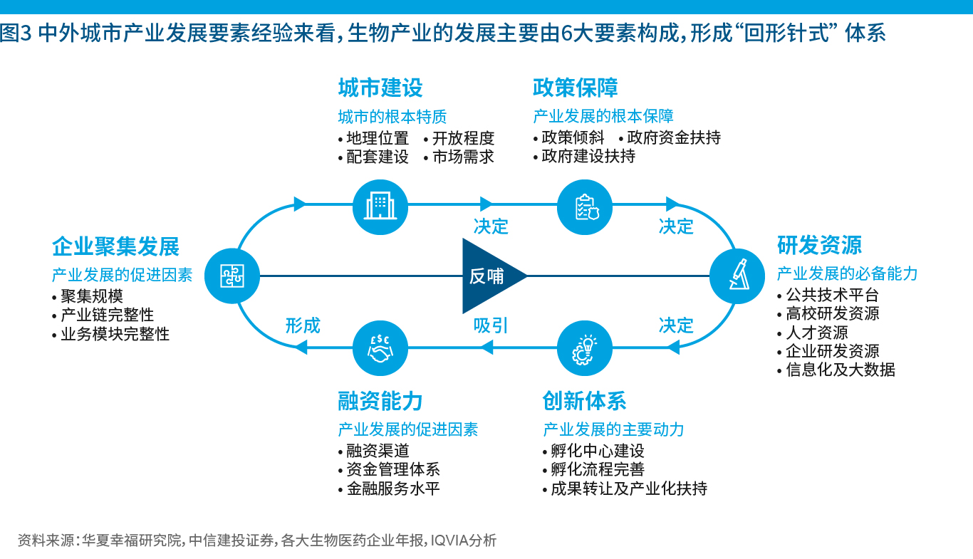 同时通过对国内外生物医药产业发展领先城市进行案例研究,对以城市为核心的生物医药产业创新发展关键要素进行总结。