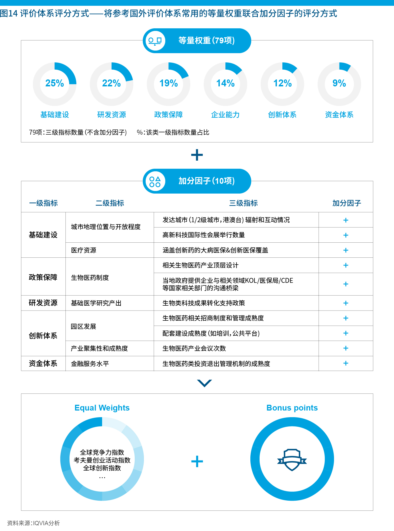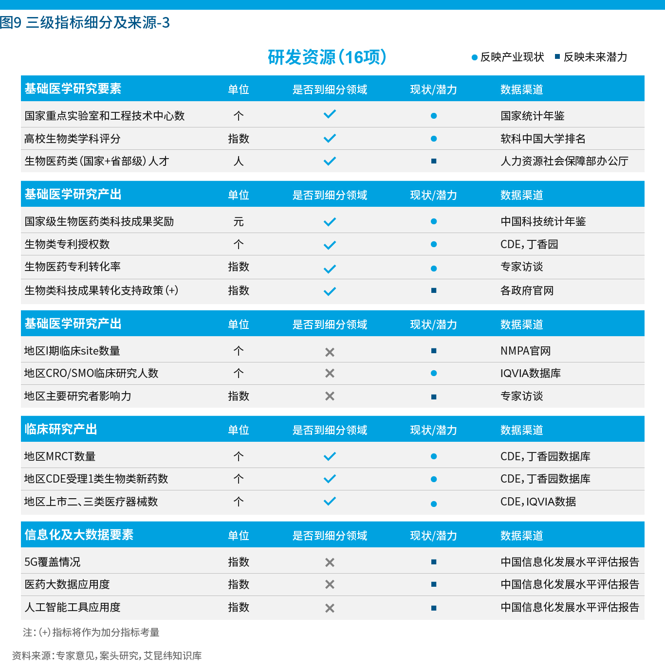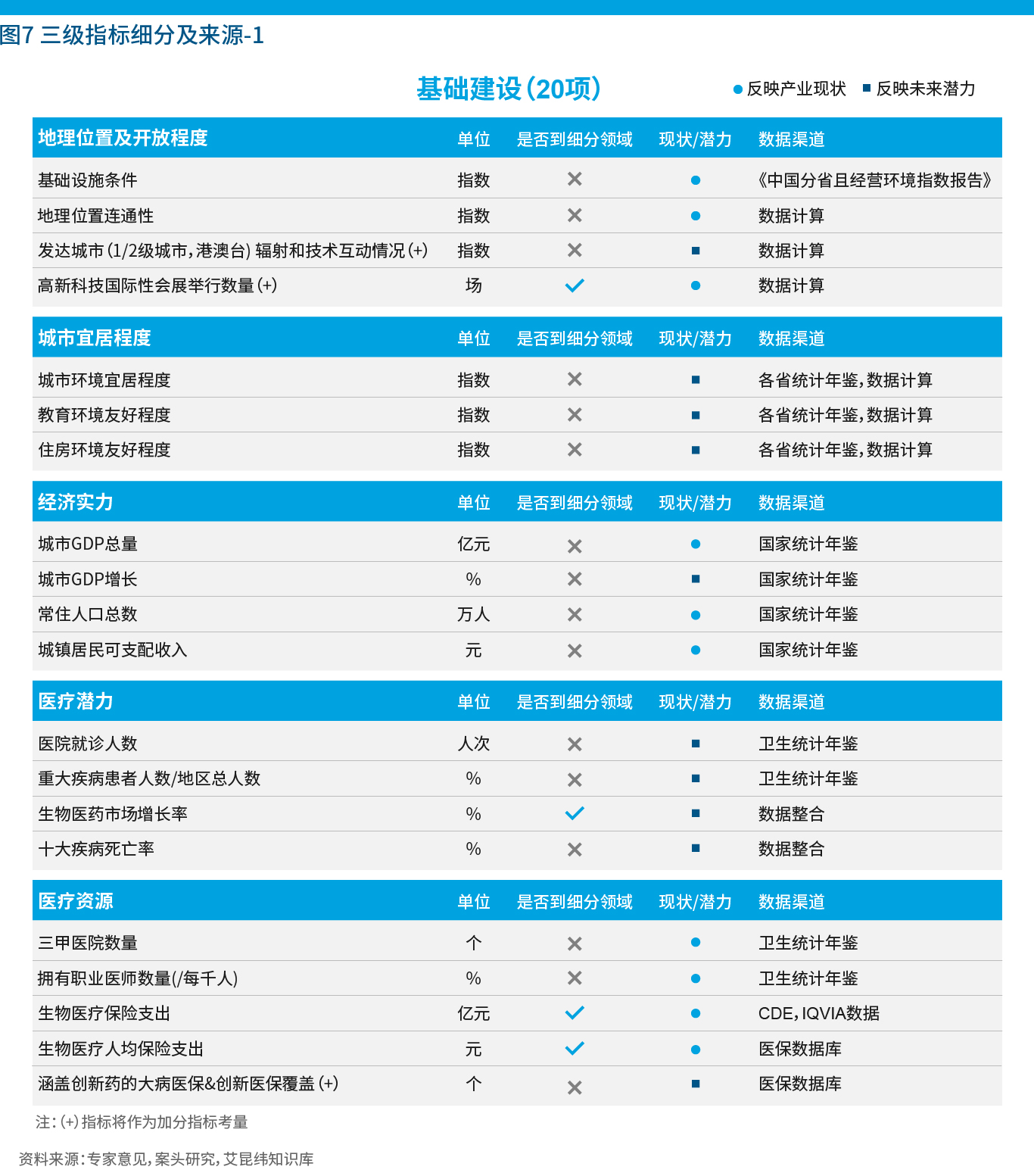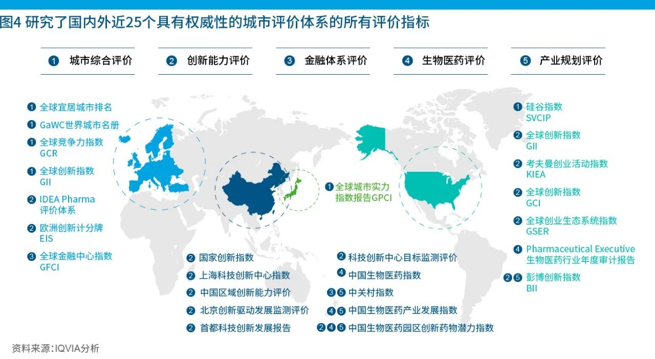城市的选取以中国省、市、地级市划分,并且以“生物医药和技术作为城市发展的主要产业之一”作为入选标准,城市交通2小时经济圈内的所有相关创新资源都将被纳入评估。