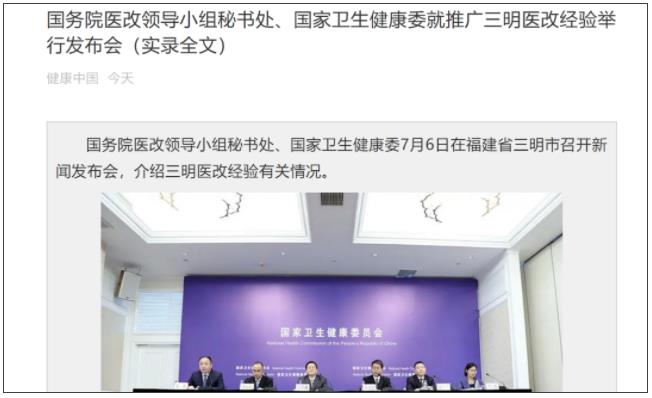 从 2015 年的「全国医改看福建,福建医改看三明」,到 2021 年的「下半年医改重点就是推广三明经验」,三明医改的小城故事走向全国,似乎已经成为不可阻挡的潮流。
