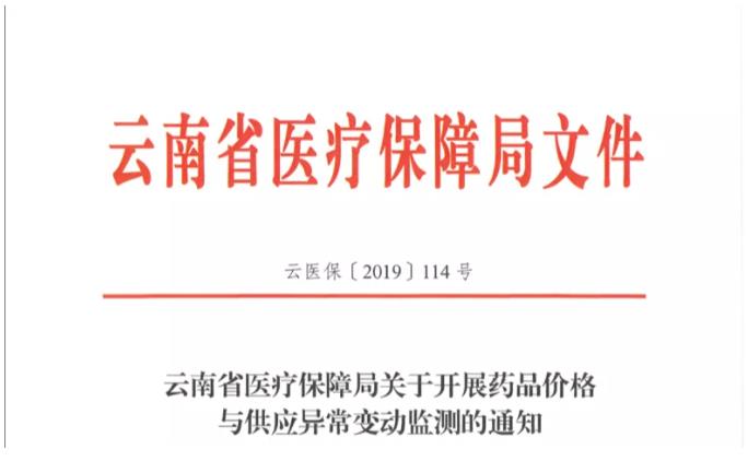 7月16日,云南省医保局发布《关于开展药品价格与供应异常变动监测的通知》称将建立药品价格、供应日常监测机制。