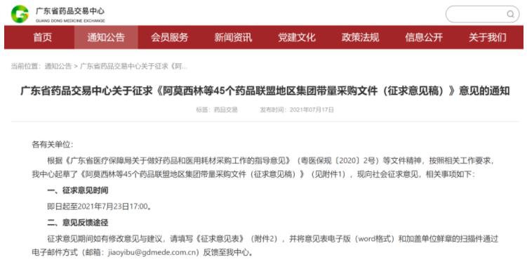广东超级联盟预计将掀起新一轮的药品降价狂潮。7月17日晚,广东省药品交易中心发布《阿莫西林等45个药品联盟地区集团带量采购文件(征求意见稿)》(以下简称“意见稿”),向社会征求意见,业界可在2021年7月23日17:00前反馈修改意见和建议。
