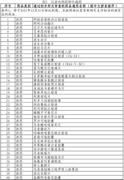 1.将于 2021 年 12 月 31 日协议到期,且按照协议需重新确定支付标准的独家谈判药品。协议有效期包括谈判协议 有效期和续约谈判协议有效期。