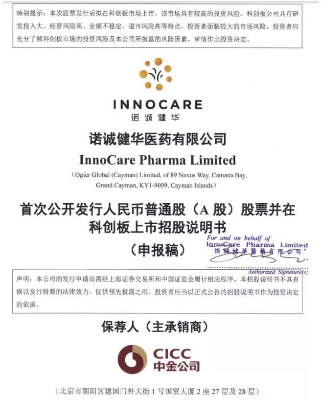 导读:崔霁松博士和施一公博士联合创办,诺诚健华申报科创板IPO!