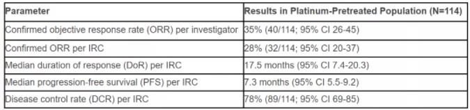 FDA的批准是基于在1/2期临床试验中曾接受过含铂化疗治疗的患者群体。在今年ASCO年会上公布的数据显示,根据独立数据监控中心的评估,mobocertinib达到28%的确认客观缓解率,中位缓解持续时间为17.5个月,中位总生存期为24个月,中位无进展生存期为7.3个月。