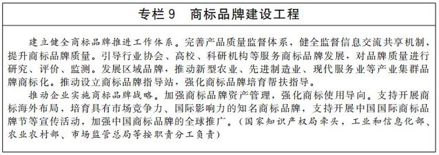 推动知识产权融入产业创新发展。培育专利密集型产业,探索开展专利密集型产品认定工作,指导地方制定专利密集型产业培育目录,健全专利密集型产业增加值核算与发布机制,加强专利密集型产业培育监测评价。实施商标品牌战略,加强驰名商标保护,提升品牌国际影响力。实施版权创新发展工程,打造版权产业集群,强化版权发展技术支撑。推动地方建立地理标志产品产值统计制度,健全地理标志产业发展利益联结机制,发挥龙头企业带动作用,吸引更多市场主体参与地理标志产业融合发展。完善绿色知识产权统计监测,推动绿色专利技术产业化,支撑产业绿色转型。(中央宣传部、农业农村部、市场监管总局、国家统计局、国家知识产权局等按职责分工负责)
