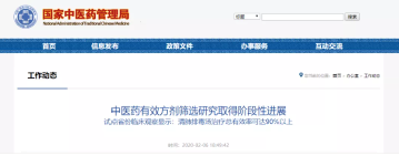 2020年2月6日,国家中医药管理局发布:中医药有效方剂筛选取得巨大进展,清肺排毒汤有效率高达90%以上,轻中重症都有效,推荐全国使用。清肺排毒汤治疗后,轻症直接治愈,几乎没有一例转化为重症、危重症;重症、危重症治愈率大大提升,各种症状好转非常明显;而且合理使用后,它还有群体预防效果。目前已经纳入第七版诊疗方案,成为一个通用方剂。