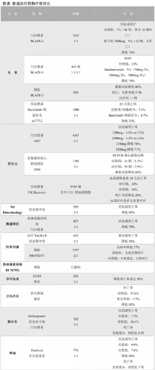 2021年12月3日,在严格的对比检测后,美国国立卫生研究院(NIH)公布了对安巴韦单抗/罗米司韦单抗联合疗法新冠抗体特效药的全部临床数据。在第三期临床试验中,与安慰剂相比,安巴韦单抗/罗米司韦单抗联合疗法能够降低高风险新冠门诊患者住院和死亡风险80%。同时,抗体在人体内可存留9至12个月的时间,对预防感染也有一定作用。特效药与新冠疫苗形成了很好的互补关系,在预防和治疗双层面均发挥作用。