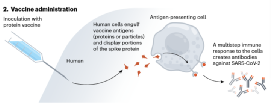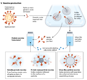 蛋白质疫苗在预防肝炎、带状疱疹和其他病毒感染方面已经应用了几十年。与使用mRNA和病毒载体新技术的新冠疫苗不同,为了诱导保护性免疫反应,蛋白质疫苗将蛋白质联同刺激免疫产生的佐剂直接输送到人体细胞内。新冠蛋白质疫苗的设计如下图所示:
