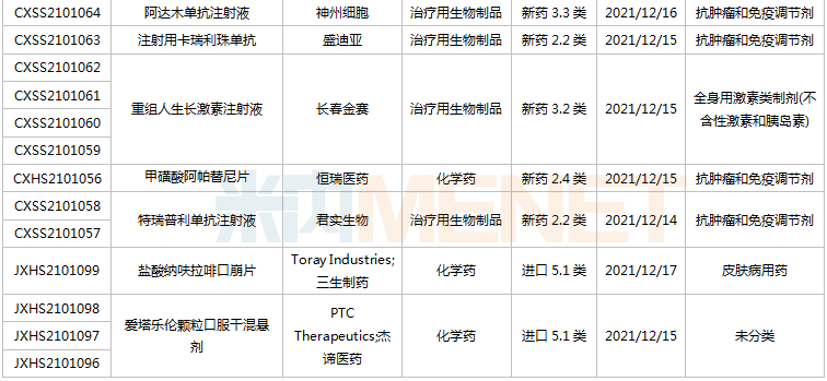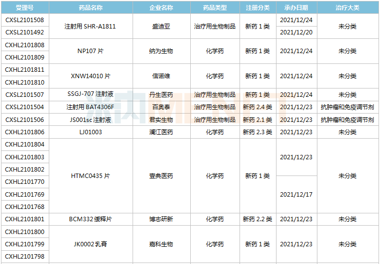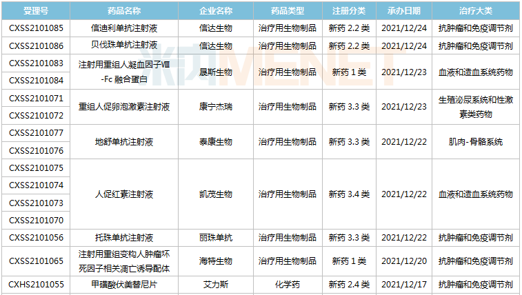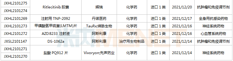 (12.11-12.24)获承办的国产/进口新药上市申请
