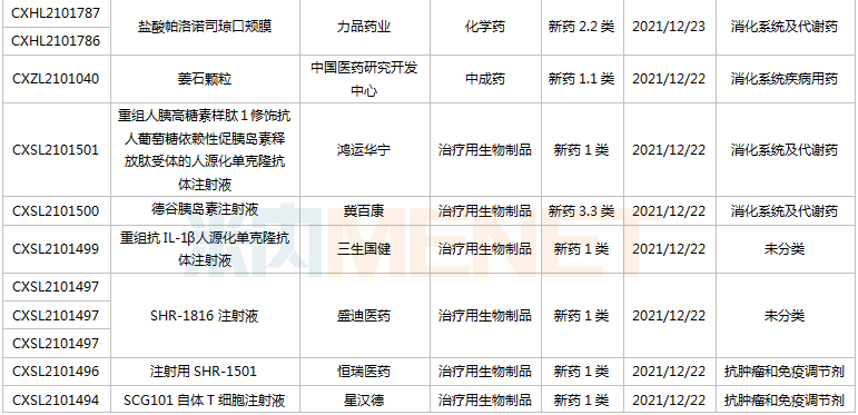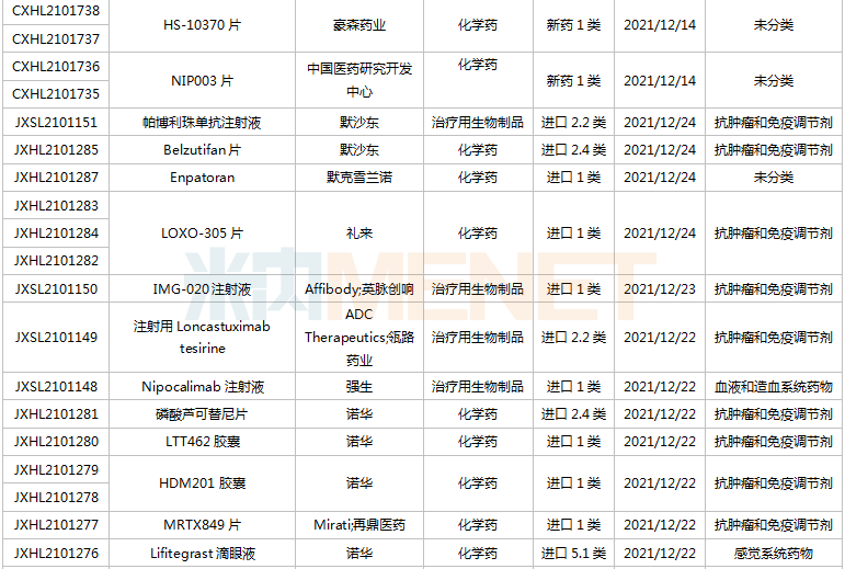 (12.11-12.24)获批临床的国产/进口新药