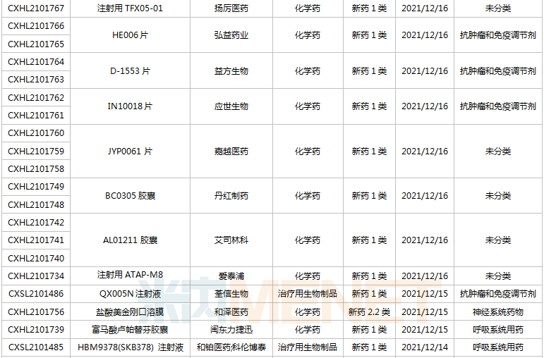 16款新药申请上市!含2款1类新药、3款生物类似药