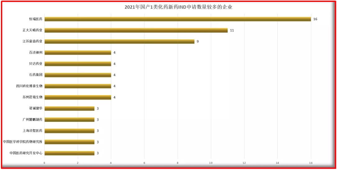 图3 2021年国产1类化药新药IND申请数量较多的企业分布
