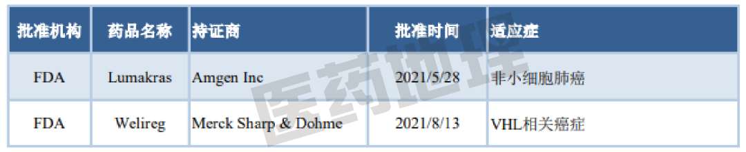 美国FDA于5月28日加速批准了安进公司的KRASG12C抑制剂Lumakras,用于治疗既往至少接受过一次系统治疗的携带KRASG12C突变局部晚期或转移性非小细胞肺癌(NSCLC)患者。Lumakras是在长达40多年KRAS突变癌蛋白研究之后,全球首个成药的KRASG12C抑制剂。默沙东的抗肿瘤新药Welireg为第一款HIF-2α抑制剂疗法,是第一个也是唯一一个获批用于治疗希佩尔•林道综合征(VHL)疾病相关癌症的药物,相关生物学研究于2019年获得诺贝尔生理学或医学奖。