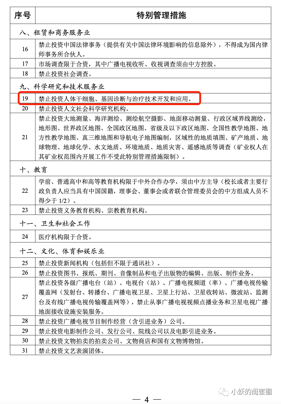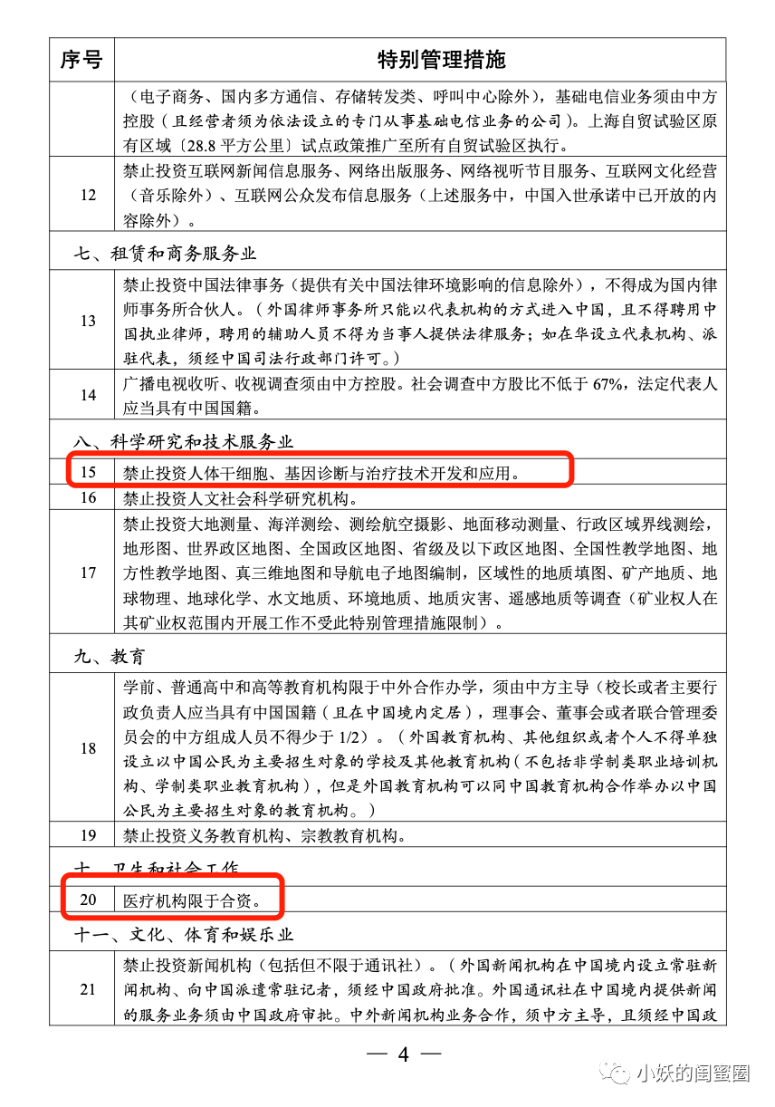 第47号、48号令指出,禁止外商投资“人体干细胞、基因诊断与治疗技术开发和应用”,“医疗机构限于合资”,以下为两个号令的具体内容。