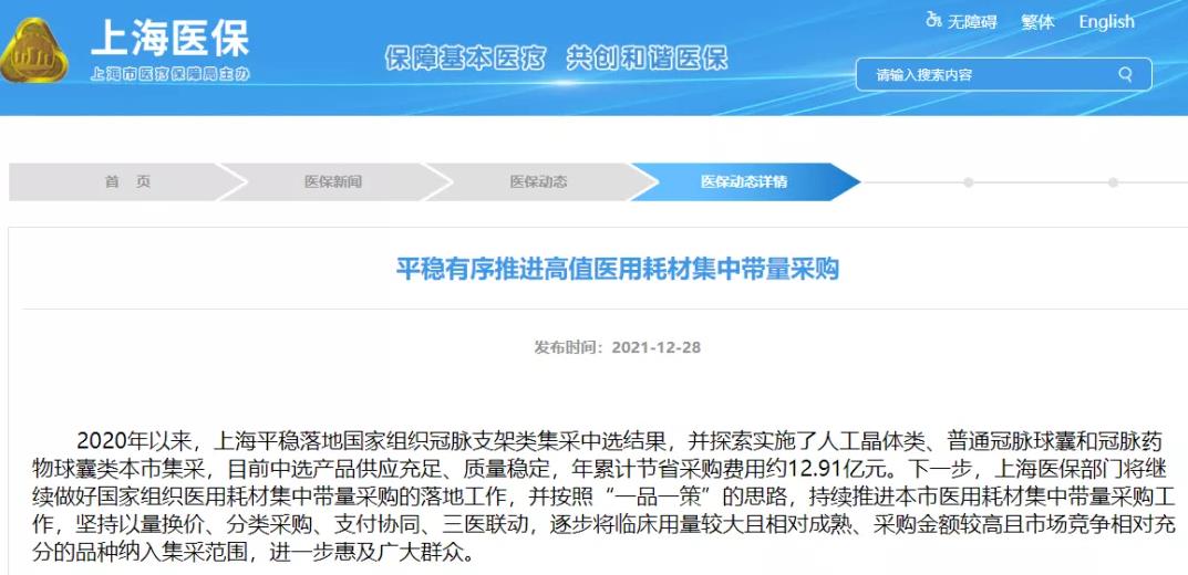近日,上海市医保局等有关部门履行医药采购和医疗器械监管职责,对该院进行了约谈,通报了关于冠脉球囊质量的调查结果。