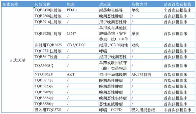 在呼吸领域,2021年正大天晴获批临床的为TQC2731注射液和吸入用TQC3721混悬液,前者适应证针对哮喘,后者针对慢阻肺和哮喘。除此之外,正大天晴还有一款处于研发中的呼吸领域1类新药TQC3564.在2020 Q3 完成了I期临床。