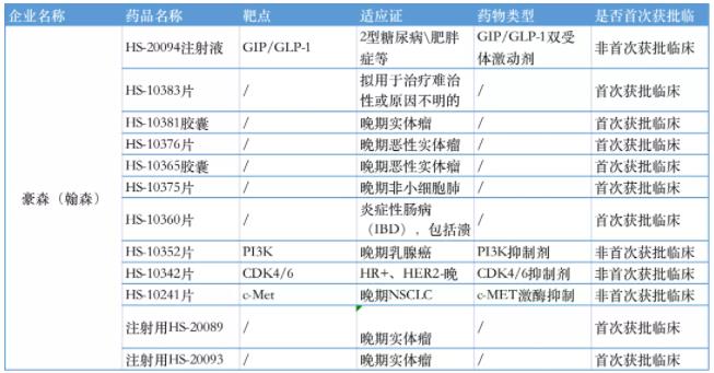 豪森以小分子化合物居多,适应证以抗肿瘤占绝大多数,也覆盖了消化系统疾病、神经系统疾病等领域,已公开涉及PIK3、c-Met、CDK4/6等多个热门靶点。
