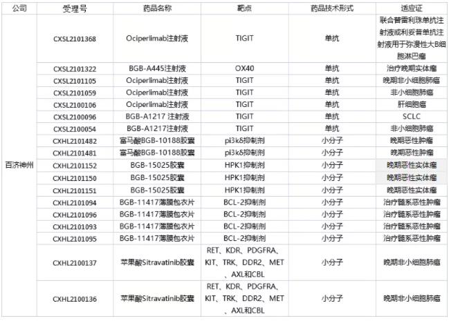 按照受理号百济共在CDE斩获了11个1类化药IND,7个1类生物药IND,其适应证全部覆盖于肿瘤领域,包括实体瘤和血液瘤。靶点覆盖了现今最为流行的TIGIT、QX40、HPK1、BCL-2、pi3kδ。