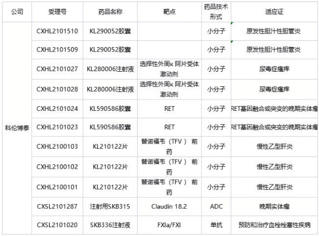 按照受理号科伦共在CDE斩获了9个1类化药IND,2个1类生物药IND,其适应证覆盖于肿瘤、内分泌治疗和抗病毒领域。