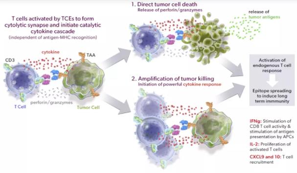 Amunix进一步通过使用已经过临床验证的XTEN技术开发了一种新型双特异性XPAT平台,它可以将双特异性抗体以较低剂量递送到患者体内,从而降低毒副作用。XPAT是一种具有“前药”(prodrug)特征的双特异性抗体,它能够像一座桥一样将肿瘤和T细胞拉到一起。XTEN是一种蛋白多聚物,它不但能够在不需要Fc蛋白域的情况下,提高双特异性抗体的半衰期,而且,在健康组织中能够阻断双特异性抗体与靶点的结合。在肿瘤微环境中存在的蛋白酶能够切除XTEN修饰,从而选择性释放前药的活性,进而让其疗法更为安全,有效。