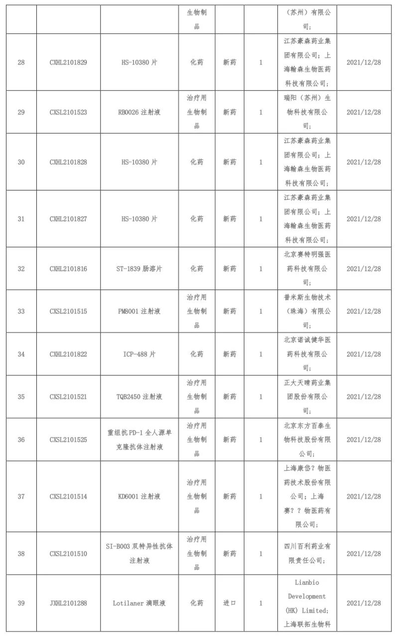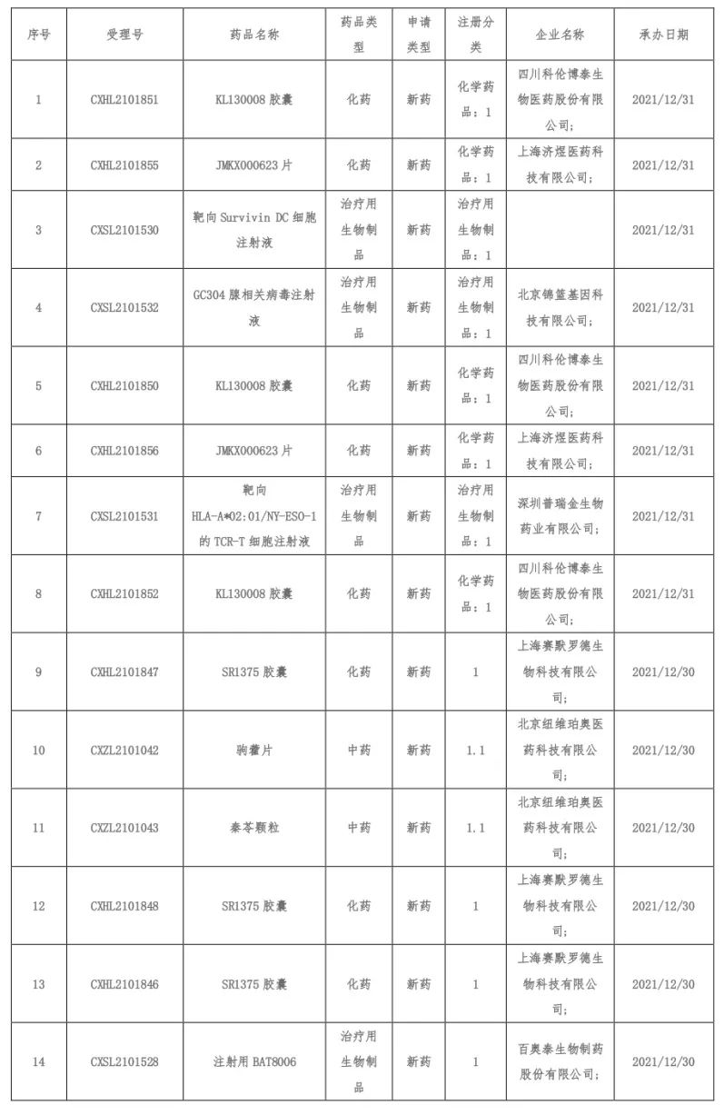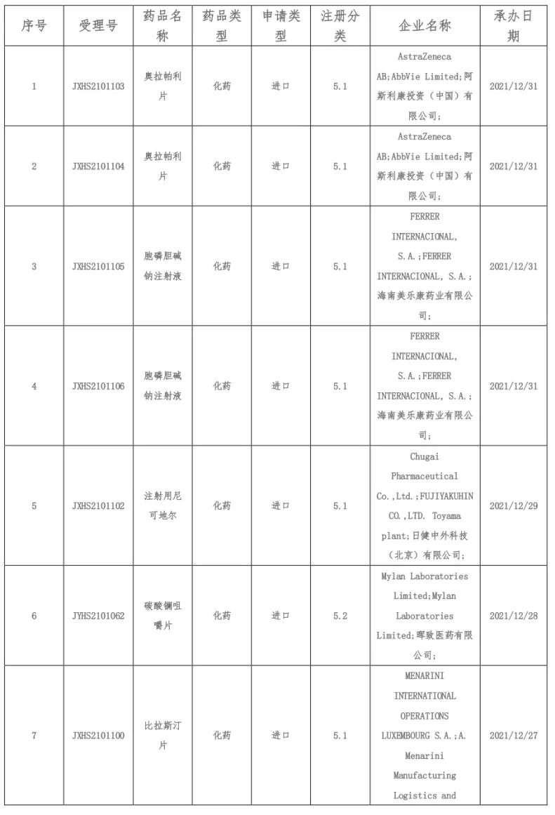 2021年12月27日至31日,CDE共受理药品申请134个(不包括补充申请和进口再注册,下同)。其中,国产药品受理号122个,进口药品受理号12个。一致性评价受理17个。