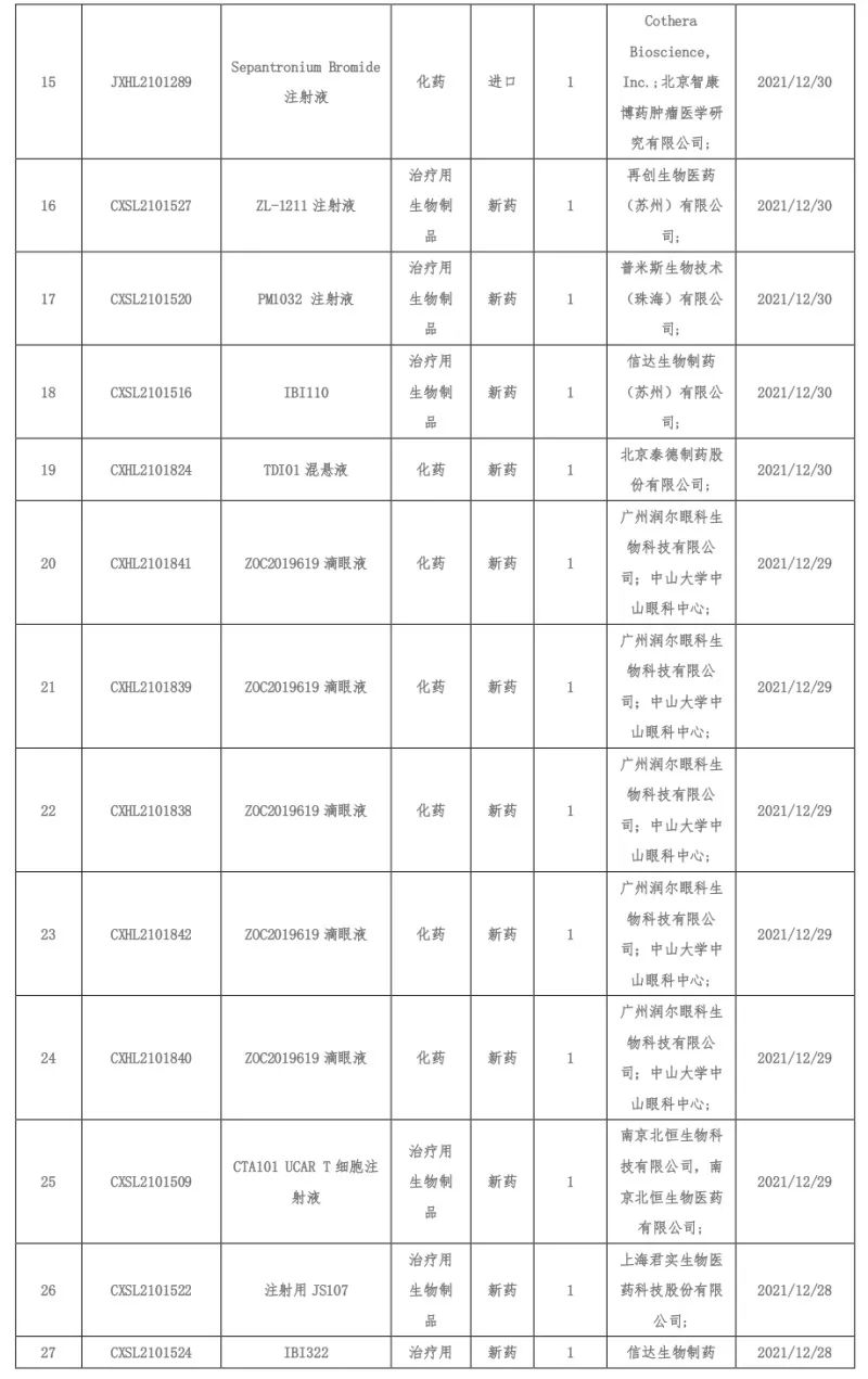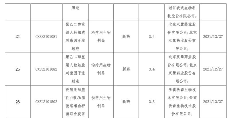 3类药品受理号共26个,其中化药19个,治疗用生物制品6个,预防用生物制品1个。分别为: