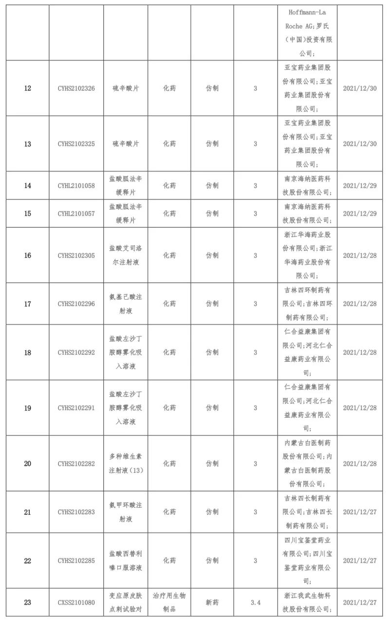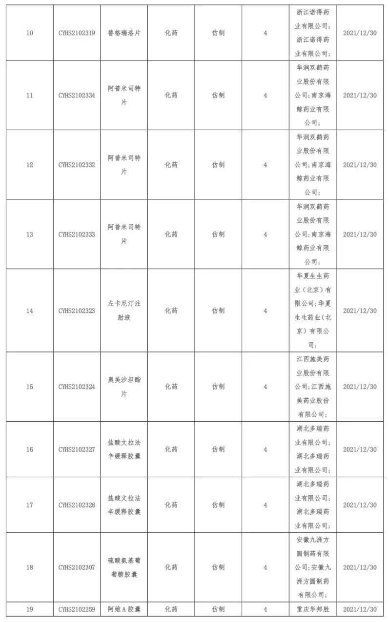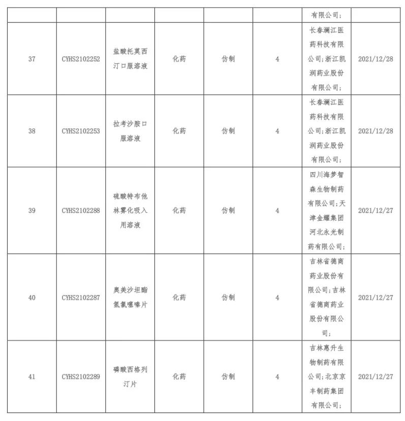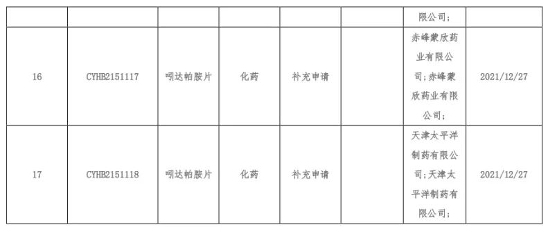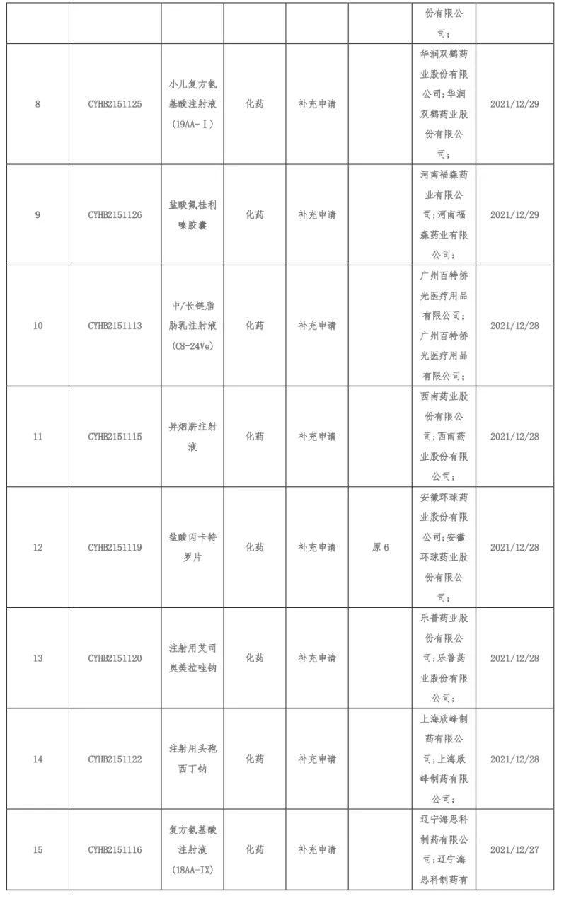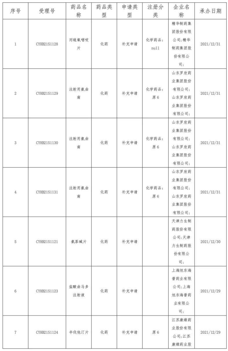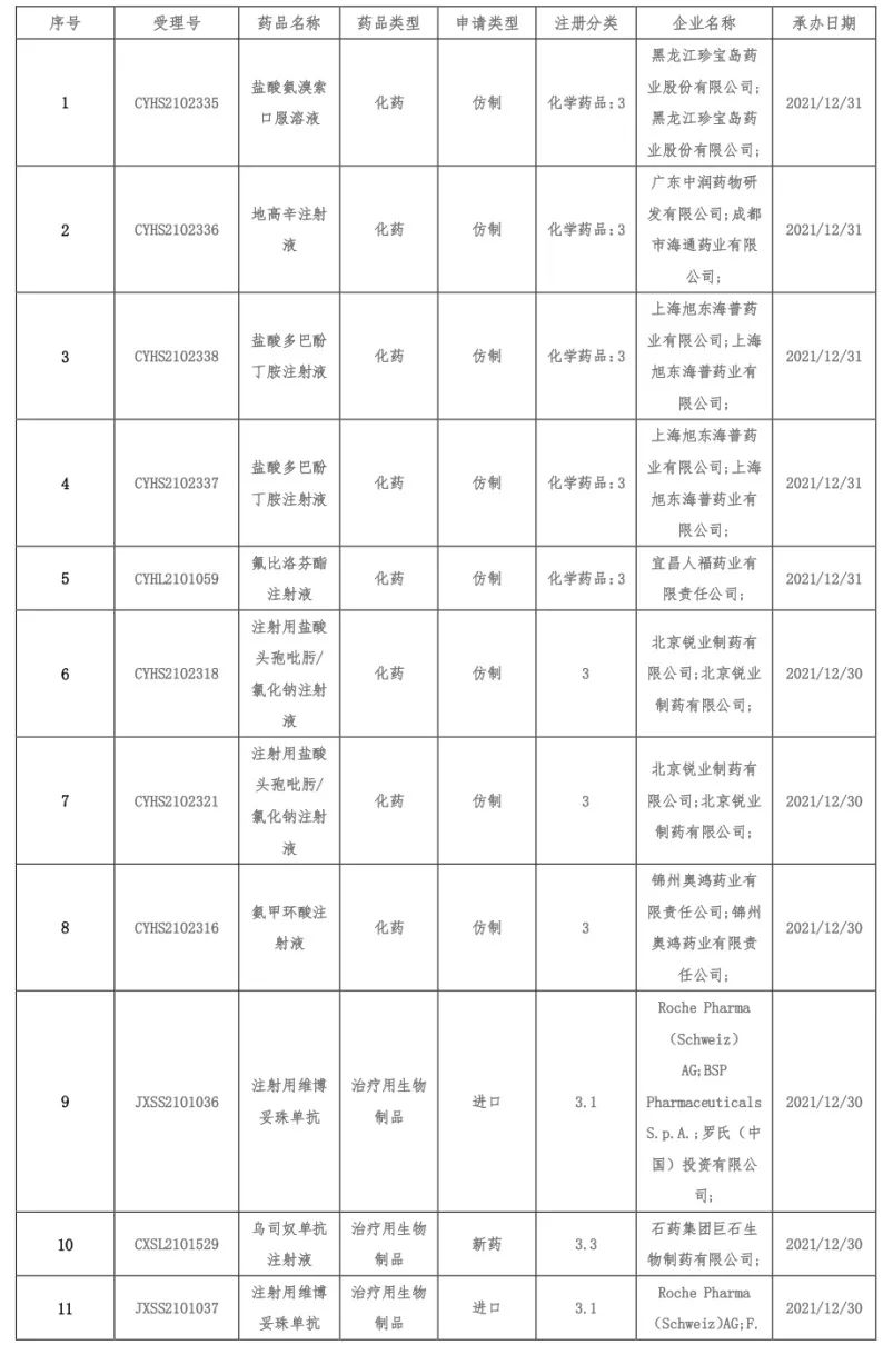 这些受理号分别来自20家企业,18种药品。其中,上海旭东海普药业有限公司的盐酸多巴酚丁胺注射液;北京锐业制药有限公司的注射用盐酸头孢吡肟/氯化钠注射液;亚宝药业集团股份有限公司的硫辛酸片;南京海纳医药科技股份有限公司的盐酸胍法辛缓释片;仁合益康集团有限公司、河北仁合益康药业有限公司的盐酸左沙丁胺醇雾化吸入溶液;北京双鹭药业股份有限公司的聚乙二醇重组人粒细胞刺激因子注射液均有2个申请被受理。