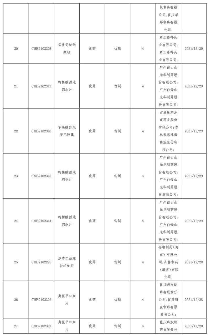 这些受理号分别来自27家企业,30种药品。其中,浙江诺得药业有限公司的氯沙坦钾氢氯噻嗪片的5个申请被受理。