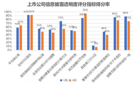 港股上市公司的报告透明度整体优于A股,A股上市公司需加强关注。港股上市公司报告透明度在报告信息可得性、完整性、实质性、量化可比性和可靠性上得分均高于A股上市公司。A股上市公司在较多透明度评价指标上得分低于40分,包括“报告编制具有明确参照标准”“董事会对ESG事宜的管理责任”“实质性议题分析与披露”“披露关键量化绩效的计算方法”等。