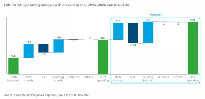 近日,IQVIA Institute发布重磅报告——The Global Use of Medicines 2022: Outlook to 2026,根据报告,在COVID-19、药品用量增加、新产品上市、品牌药专利到期等多重因素的推动下,全球药品支出将以3%-6%的复合年增长率(CAGR)增长,到2026年全球药品支出预计将达到1.8万亿美元。