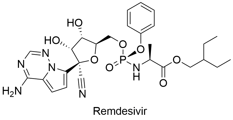 瑞德西韦是全球批准的第一个小分子药物,原研公司为Gilead Sciences,由日本于2020年5月7日率先批准。瑞德西韦是氰基取代的腺苷核苷酸类似物前药,在体内三磷酸化,为RNA依赖RNA聚合酶(RdRp)抑制剂,作为病毒RdRp的底物掺入到到病毒新合成的RNA链中,进而中断病毒基因组的合成,从而达到抑制病毒的作用。在CDC的Covid19Guideline中引用的一项临床试验中(n=1062),相比安慰剂显著缩短恢复时间(10days vs. 15 days; RRR 1.29; 95% CI[1.12–1.49]; P<0.001);第15天,基于量表的临床改善显著高于安慰剂组(OR 1.5; 95% CI[1.2–1.9]; P<0.001);第29天,相比安慰剂组死亡率没有显著差异(HR 0.73; 95% CI[0.52–1.03]; P= 0.07),不良反应为引起恶心、转氨酶升高(转氨酶升高10倍以上需要停药)、凝血酶原时间增加、过敏反应。相比安慰剂SAE的发生率没有统计学差异(25%vs.32%) ,相比安慰剂转氨酶升高的发生率没有统计学差异(6%vs.10.7%)。