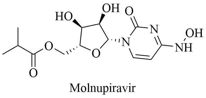 Molnupiravir最初由埃默里大学和乔治亚州立大学发现,2020年RidgebackBiotherapeutics获得了Molnupiravir的商业化权利,专利仍归埃默里大学所有,RidgebackBiotherapeutics随后与默克公司合作推进Molnupiravir用于SARSCoV-2的临床试验。Molnupiravir体内活性代谢物为β-D-N4-羟基胞苷,2021年10月1日,molnupiravir在III期临床中期分析所呈现的数据喜人,因此提前终止,并向美国食品药品监督管理局(FDA)申请紧急使用授权(EUA),2021年11月在英国最先批准,12月在美国、日本和印度分别获批。获批基于的临床试验将主要指标设置为随机分组后29天内住院或病死的患者百分比,结果发现:Molnupiravir组与对照组的病重或死亡率分别为7.3%(28/385)和14.1%(53/377)(p=0.0012)。本次试验中共8名受试者死亡,但全部在对照组。也就是说,molnupiravir将进展为重症或死亡的几率降低了50%,且将死亡率拉低至0%。