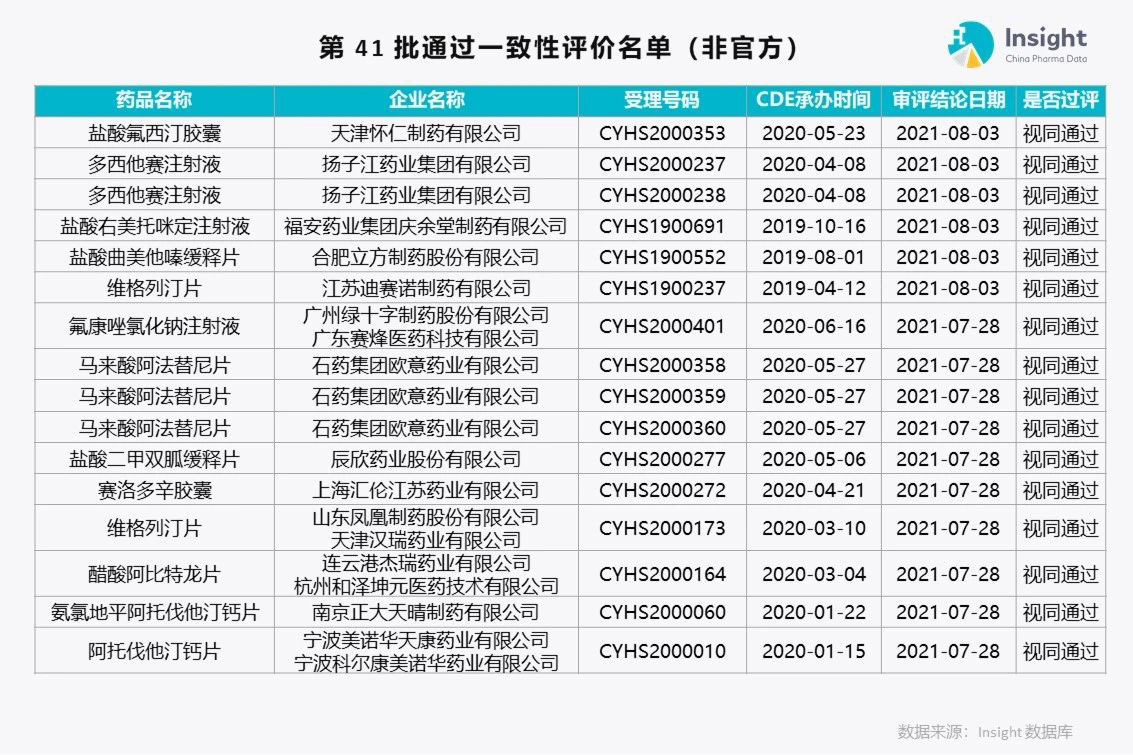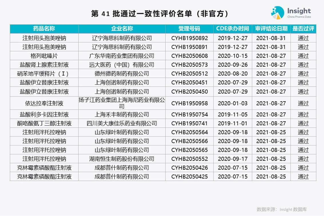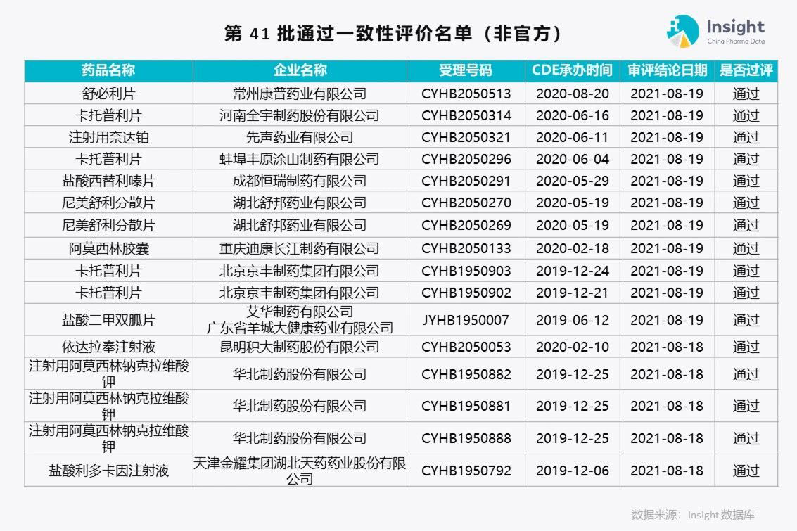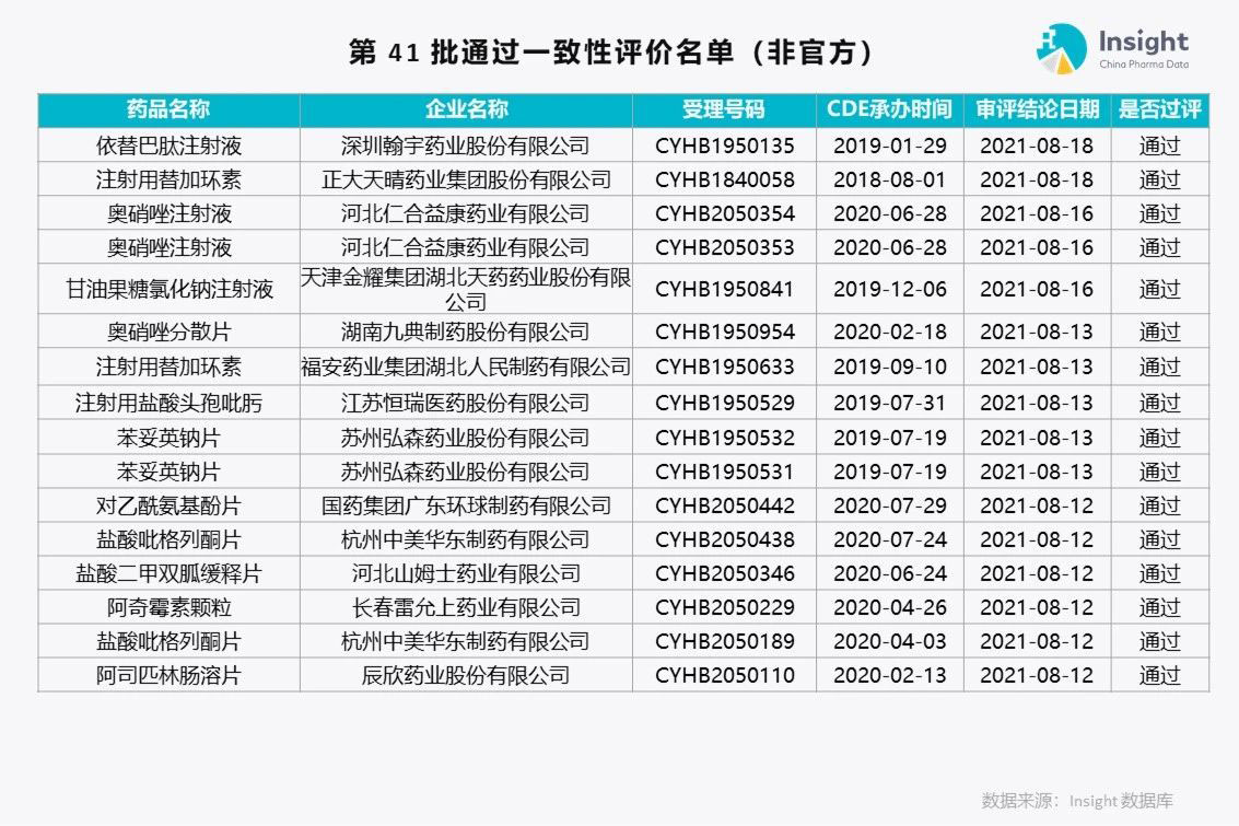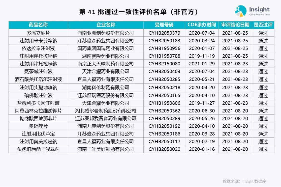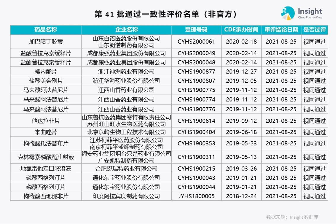 Insight 数据库(https://db.dxy.cn)独家整理了第 41 批通过一致性评价的品种名单,共 175 个受理号。