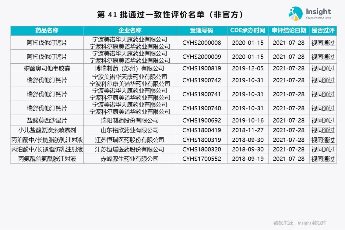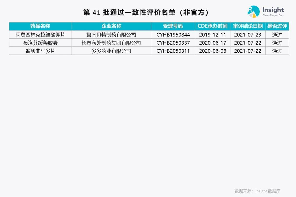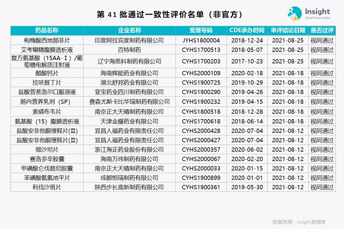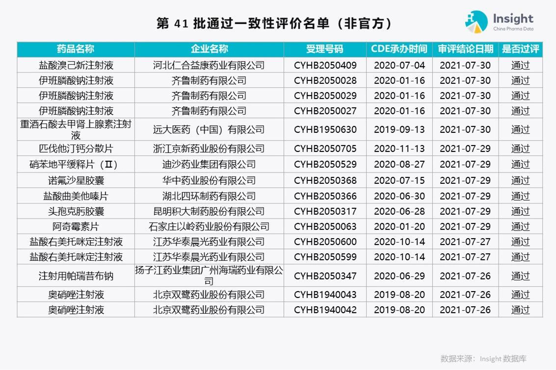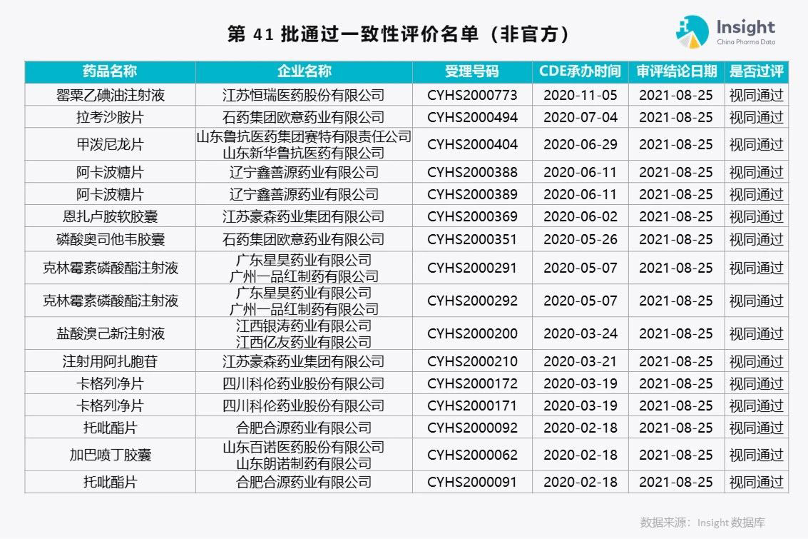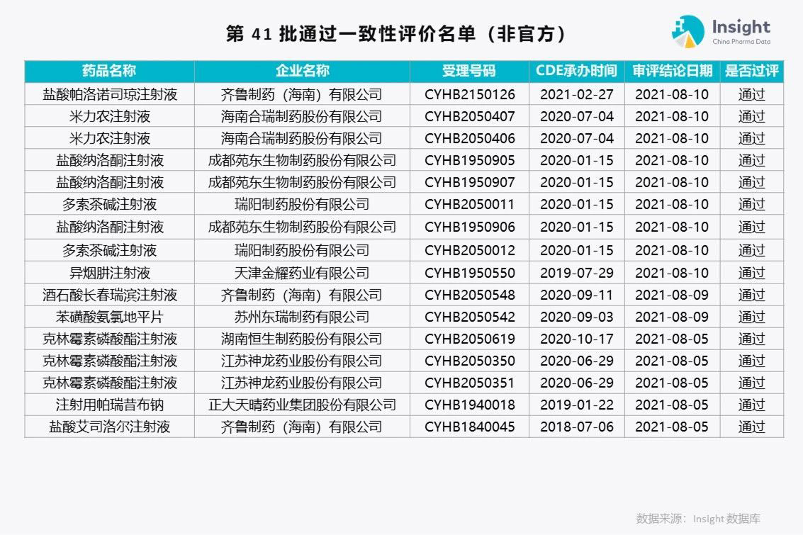 Insight 数据库(https://db.dxy.cn)独家整理了第 41 批通过一致性评价的品种名单,共 175 个受理号。