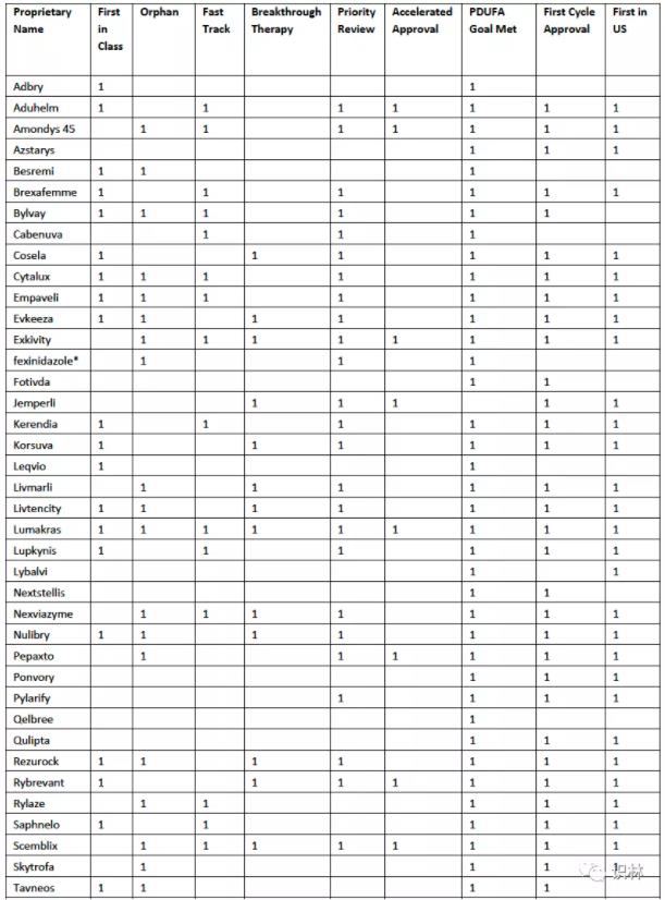 (在某些情况下,申办者可以根据CDER的优先审评券计划兑换优先审评券。此类药物未包括在以下清单中。)
