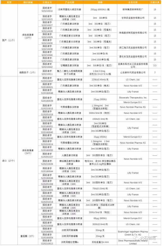 表3::2021年我国新获批上市的重组蛋白药物情况