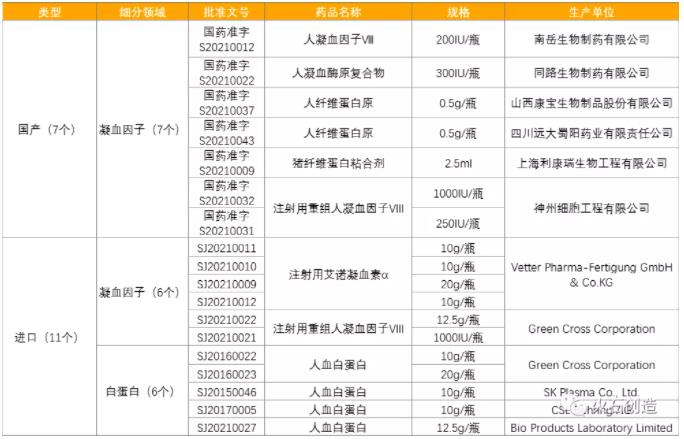 表4. 2021年国内上市血液制品情况