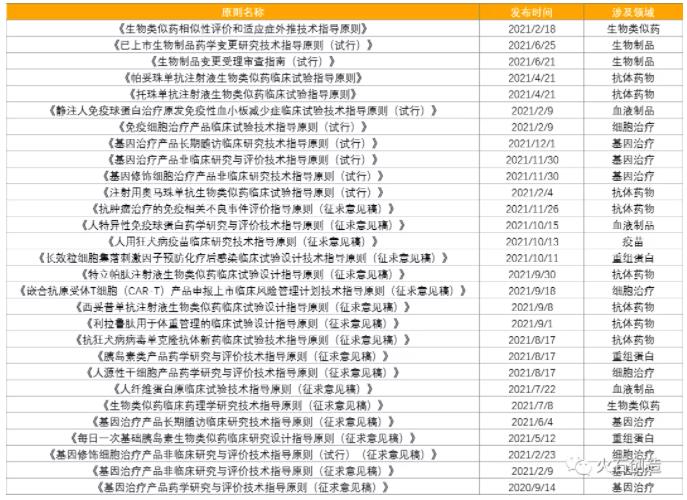 审评原则体系进一步完善。2021年CDE共发布29个与生物药密切相关指导原则(含18个征求意见稿),其中,《生物类似药相似性评价和适应症外推技术指导原则》、《已上市生物制品药学变更研究技术指导原则(试行)》、《生物制品变更受理审查指南(试行)》等总体性原则,进一步规范了生物药规范生物类似药开发和评价,加强了生物药全生命周期管理,优化了审评审批中的流程要求。从细分领域看,抗体药物领域是CDE关注焦点,共有8个原则发布,涵盖了帕妥珠单抗、托珠单抗、奥马珠单抗等药品。
