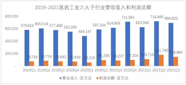 三季度医药工业销售收入和利润都明显下降,化学药品制剂和中成药制造业发展动力不足根据工信部的统计数据,2021年3季度全国医药工业收入为6948亿元,同步增长13%,但对比2季度下降了3.3%,规模减少236亿元;2021年3季度,医药工业利润总额从2季度的1817亿元下降至1490亿元,下降18.0%,下降幅度较大;但相对于去年同期,医药工业利润总额增长67%,其主要增量来源于新冠疫苗。据海关总署数据统计,2021年我国医药品(含医药材及药品)出口数量1-3季度累计达到了103.4万吨,同比增长5.2%;出口金额为2363亿元,同比大幅增长了108.0%。
