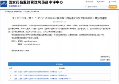 2022年1月5日,CDE发布《基于“三结合”注册审评证据体系下的沟通交流技术指导原则(征求意见稿)》(以下简称“征求意见”),征求意见时限为自发布之日起1个月。