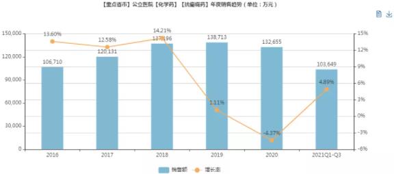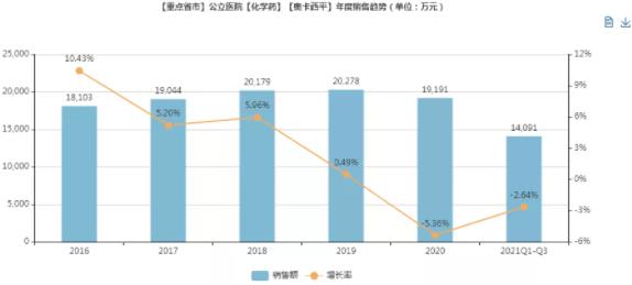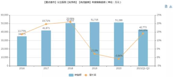 米内网数据显示,2020年中国重点省市公立医院【抗癫痫药】销售额为13.27亿元,放大至全国范围,销售规模有望超60亿元。