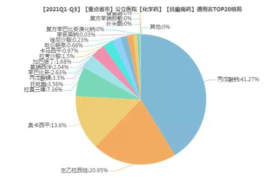 目前,国内医院销售Top 5的抗癫痫药物是丙戊酸钠、左乙拉西坦、奥卡西平、拉莫三嗪、托吡酯,占该类药物市场的86.7%,头部效应明显。