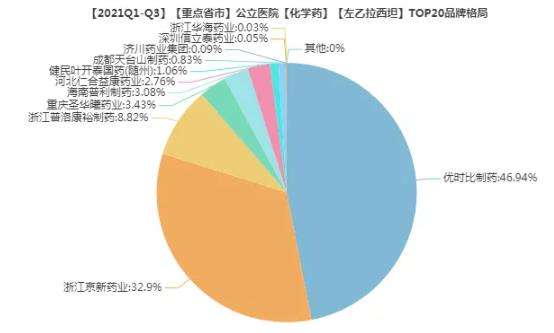 2020年重点城市公立医院销售3.12亿元,片剂为主要剂型(占86%)。伴随仿制药的过评、国采优势的凸显,京新药业、康裕制药的市占比分别扩容至32.9%和8.8%,而原研优时比(占46.9%)的市场份额已被逐步压缩。