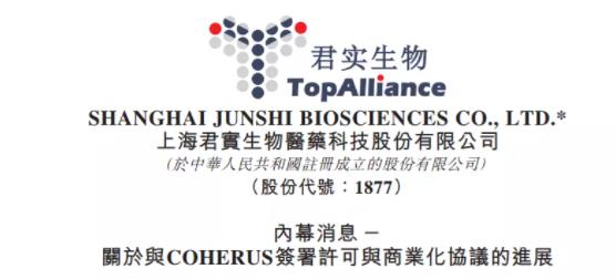 1月11日,君实生物宣布,Coherus已启动行使TIGIT单抗JS006在美国和加拿大的许可选择权的程序。同时,Coherus将向君实生物支付3500万美元首付款,最高达2.55亿美元的开发、申报和销售里程碑付款,以及产品销售净额18%的销售分成。