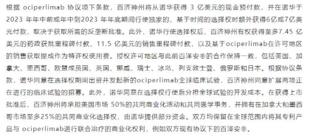 值得一提的是,12月20日,百济神州宣布与诺华扩大合作,双方将在北美、欧洲和日本共同开发、生产和商业化百济神州在研TIGIT单抗ociperlimab,交易总额高达27.95-28.95亿美元,刷新了中国本土创新药单品种海外授权交易的最高纪录。(见:2021年中国创新药license out交易TOP10)