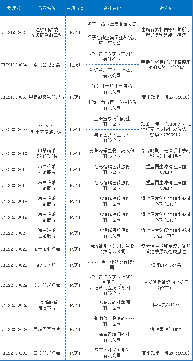 1.各药品类型申报情况