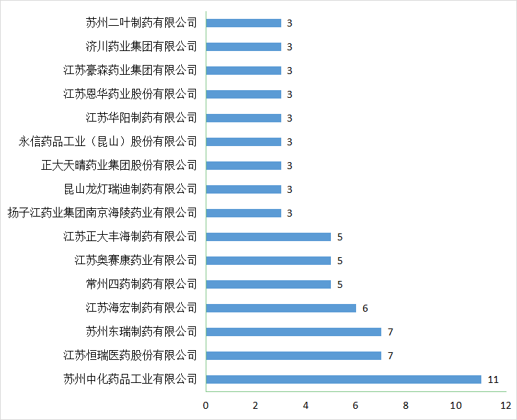 图7 2021年江苏省企业一致性评价受理数量TOP 5